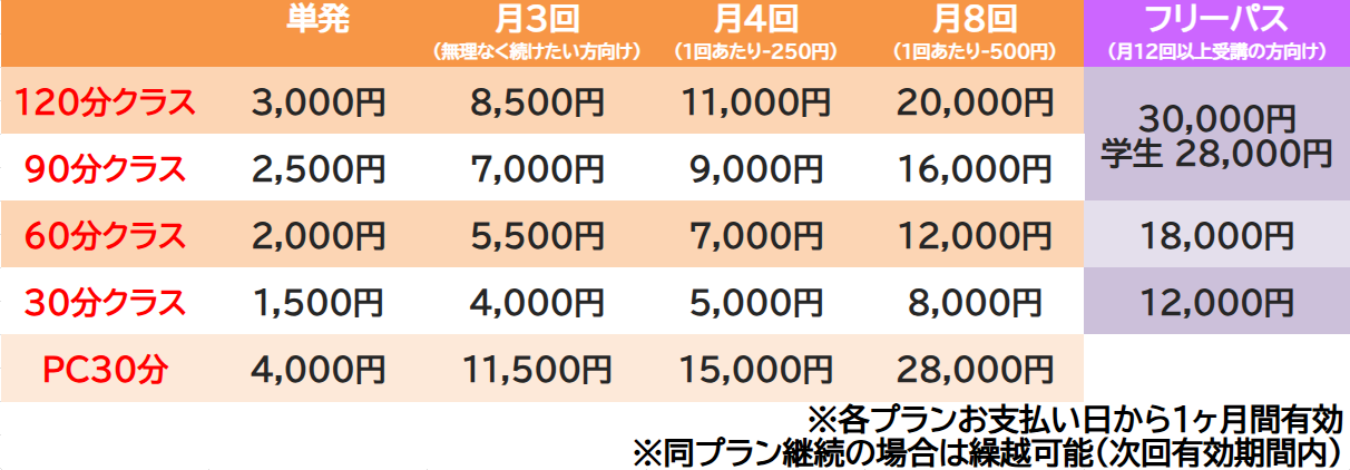 🔶60分クラスフリーパス 17,000円 → 12,000円